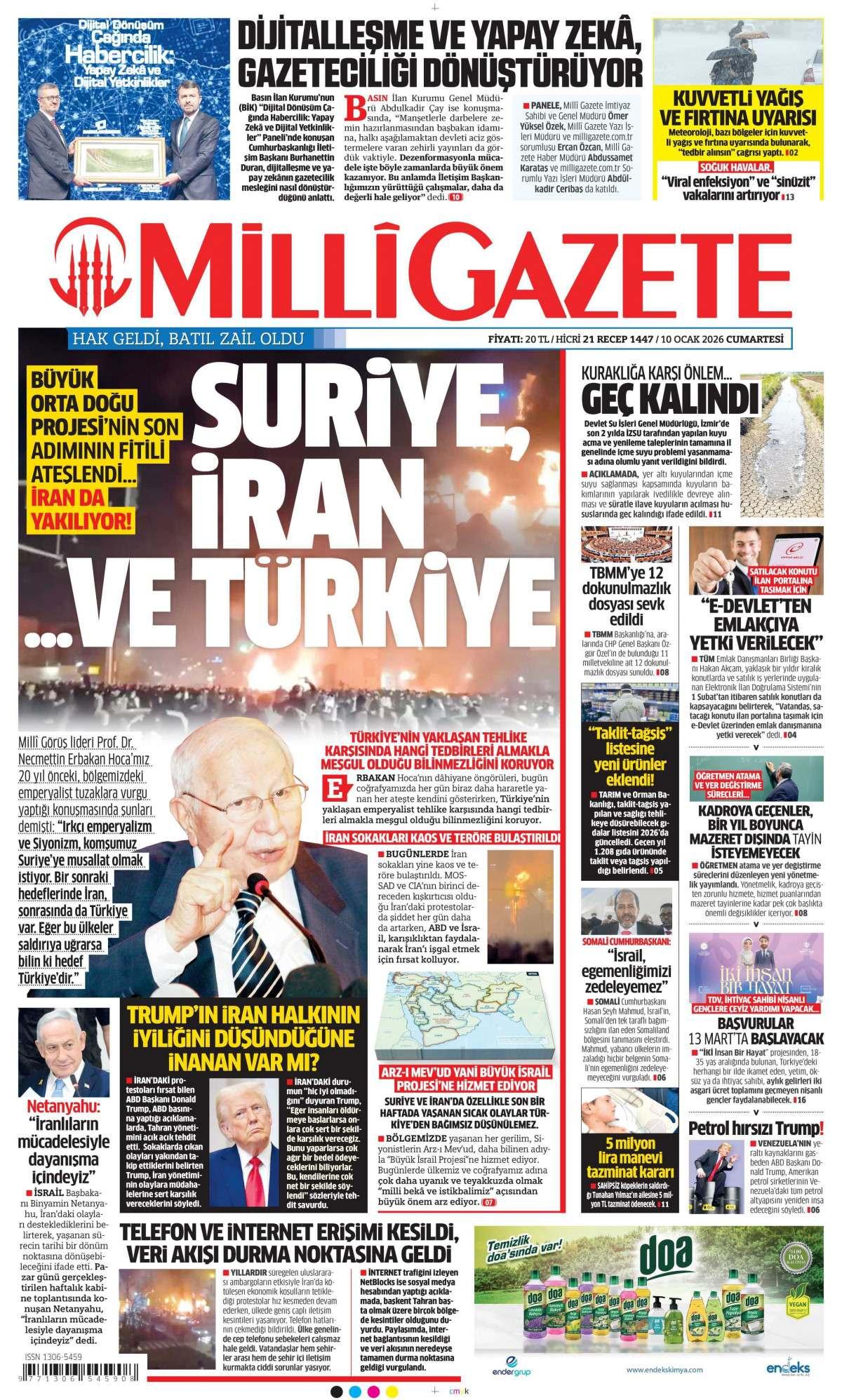 Milli Gazetesi 10 Ocak 2026, Cumartesi Günü Manşeti