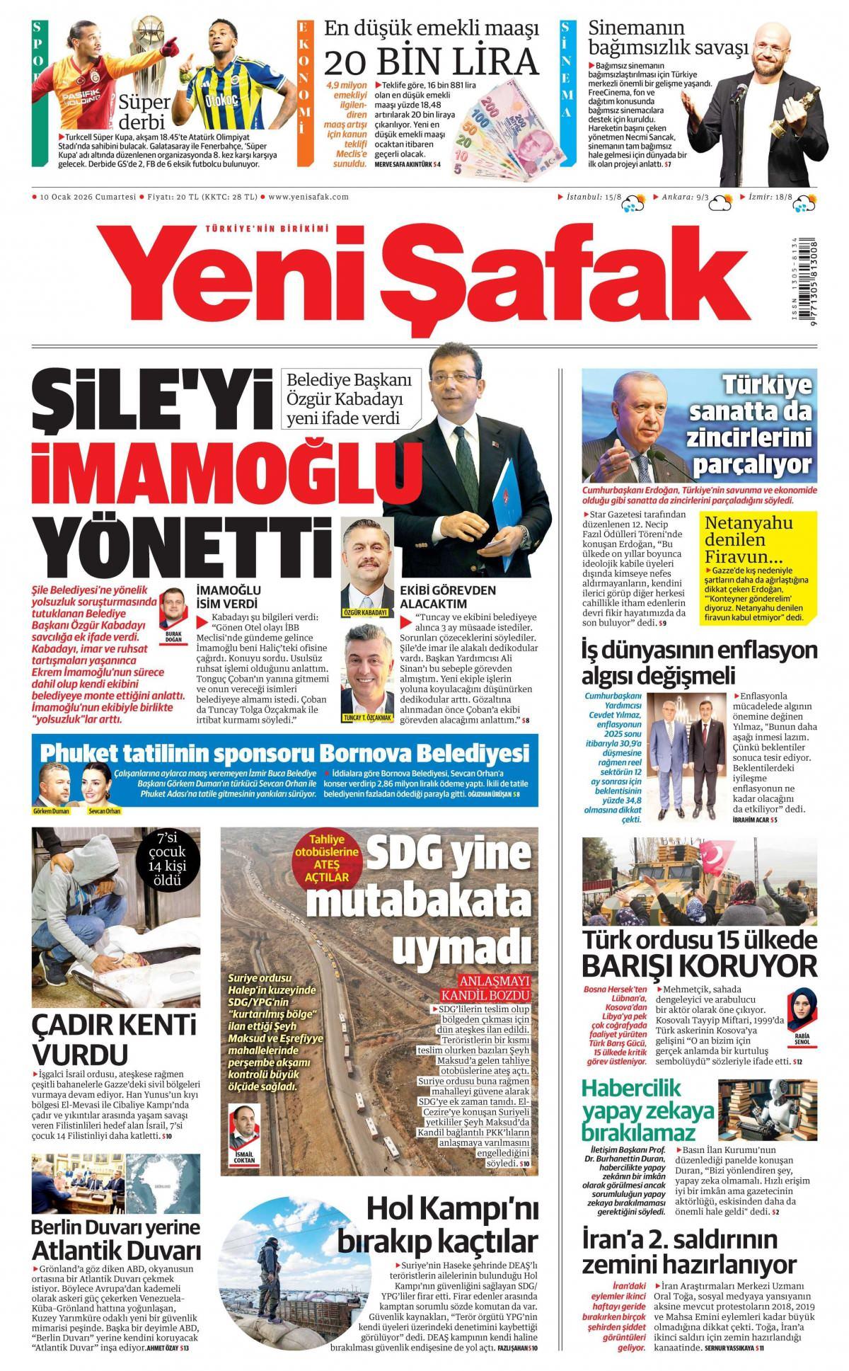 Yeni Şafak Gazetesi 10 Ocak 2026, Cumartesi Günü Manşeti